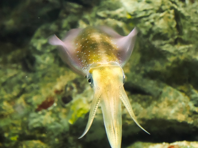 • 見た目:細長くスマートな体に、槍のように尖った長い外套(がいとう)。体は半透明で美しい光沢をもつ。