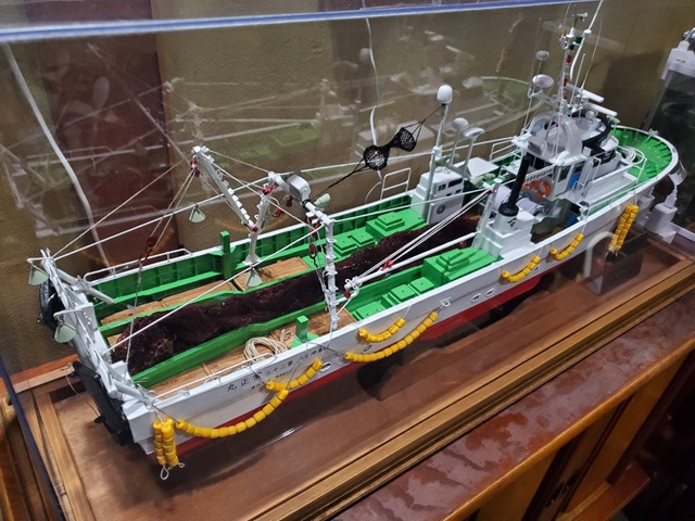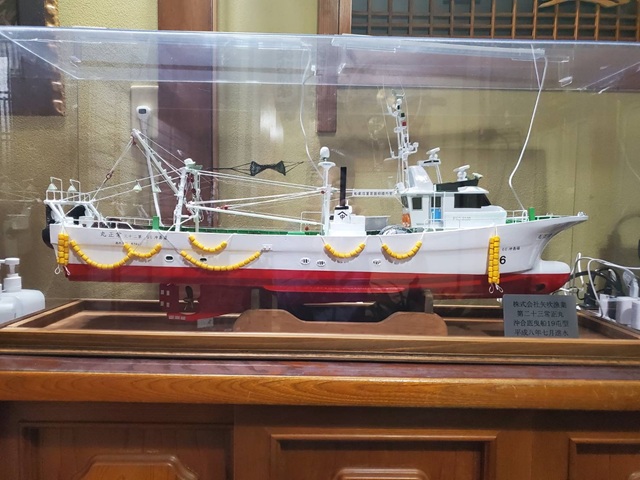 創業者である父親の夢であった新造船を造る事が出来、その船を後世に残しておきたく新造船を建造してくれた及川造船所で設計士をしていた石井治さんに相談した所、快く承諾してもらい原寸の20分の1の模型を作る事になりました。完成した模型を見るとあまりにも見事な出来栄えで、色々な思いが込み上げて来ました。
